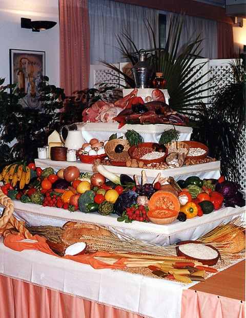 This is a picture of our Mediterranean Diet Pyramid made with fresh products. You can see a larger copy clicking on it.