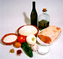 Put a dish with some of the oil on the stove to sauté the meat. Add the onion, green peppers, the garlic and the tomato. Let it cook for a few minutes. Add the loin, the white wine and the saffron and let it cook gently until the wine disappears. Remove the mixture from the stove, drain it and cool it.